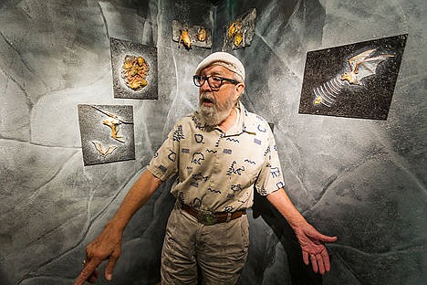 Coeur d'Alene artist Ken Jungjohann, 90, has created a 4-foot by 6-foot, L-shaped display exploring bats and their mysterious beauty. He sculpted 3-D bats from wire and clay, shaped a snag to showcase how standing dead trees can be used as habitats, and used acrylics to paint a large barn, with bats soaring from it at nighttime.