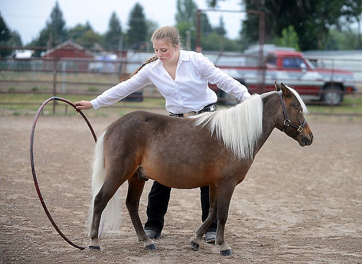 Krystal Sutton, 15, of Kalispell leads Bet through the obstacle course on Thursday, August 14, at the Northwest Montana Fair in Kalispell. Sutton won the Grand Championship. (Brenda Ahearn/Daily Inter Lake)