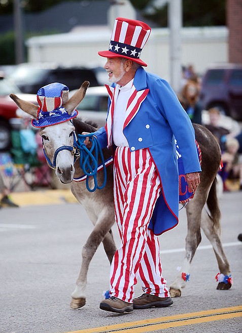 The Flathead Democrats make their way down Main Street at the Northwest Montana Fair Parade on Friday morning, August 15, in downtown Kalispell. (Brenda Ahearn/Daily Inter Lake)