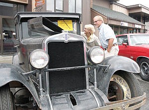 Marvin and Debbie Mickelson admire the "barn find" '30 Chevrolet coupe.
