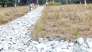 At 6:30 on Aug. 10, Teske, Kim Peck, Heidi Sichting, Don and Laura Cox and Peggy and Eric Rayome hightailed up the hill against the morning light to paint the 60-by-25 marker made of small stones.