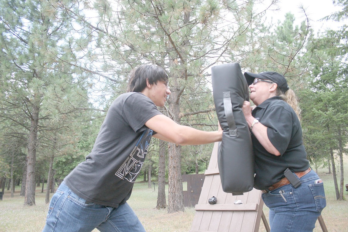 Michael Buchanan, left, practices self-defense techniques aided by Michael Anne Ewing.