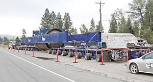 A megaload has made its way into northwest Montana as part of a long trek to Great Falls to join with other equipment for a tar sands project. The megaload is one of three pieces of a “hydrocracker,” a piece of refinery equipment used to process Canadian oil sands. The load travels at night and recently stopped outside of Libby.