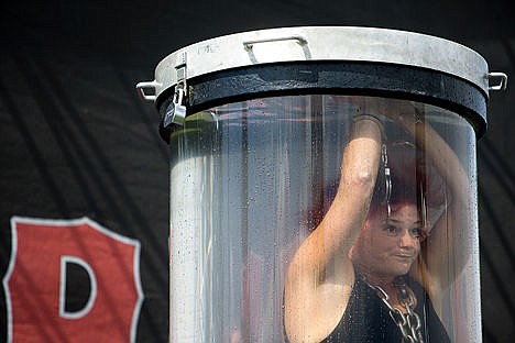 COEUR d'ALENE - The crowd hushed as Lady Houdini struggled with the chains that bound her inside the locked, 140-gallon Water Torture Cell.