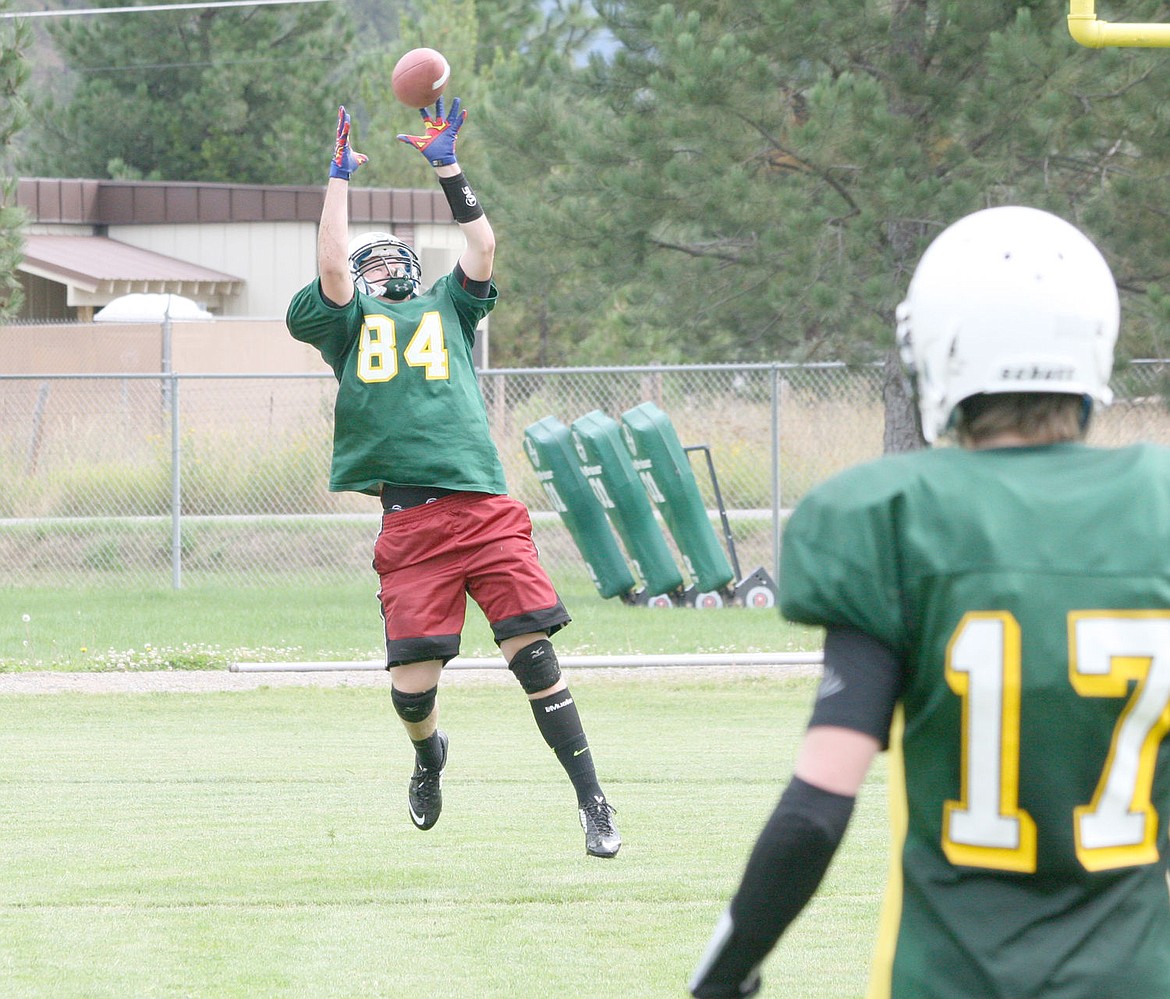 St. Regis Tiger football starting quarterback Dakota Wickham, left, receives a pass during a recent practice in preparation for the team's first game of the season.