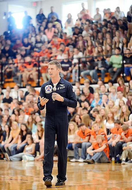 The charm and charisma of Maj. Jason Curtis captured his audience’s attention from the moment he stepped out onto the gym floor Friday morning.