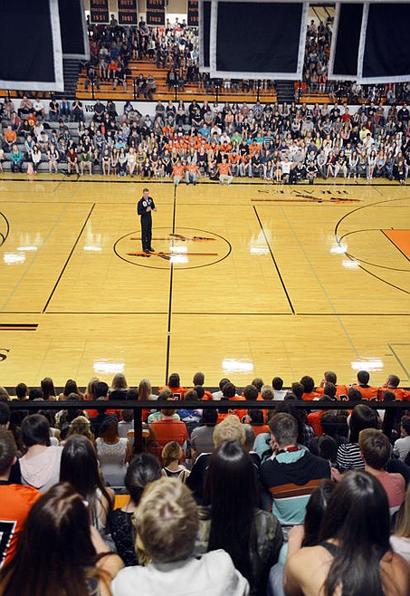 United States Air Force Major Jason Curtis addresses the students on Friday.