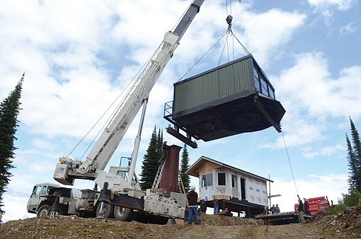 With a few delicate shifts and nudges, a crane gently set in place the top terminal for the new Flower Point chairlift at Whitefish Mountain Resort on Aug. 20. A helicopter poured concrete footings for the 17 lift towers on Aug. 25, marking the halfway point of the construction project as ski season approaches.