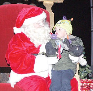 Three-year-old Dexter Stubbs asks Santa for a Thomas the Train and Percy during Troy's annual Christmas tree lighting.