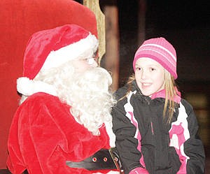 Allie Carr, 10, requests a Nerf bow and arrow during Troy's Christmas tree lighting and meet and greet Santa and Mrs. Claus Saturday evening in downtown Troy.