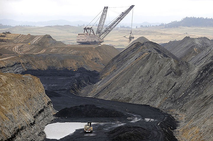 FILE - This May 9, 2008 file photo shows production at the Westmoreland Coal Mine northeast of Hardin, Mont. Signal Peak Energy, a mining company, plans to start exploratory work this spring on an estimated 400 million tons of coal beneath Montana’s Crow Indian Reservation, adding to a spate of recent interest in the region’s huge coal reserves despite flagging domestic demand for the fuel. (AP Photo/Billings Gazette, David Grubbs, File)