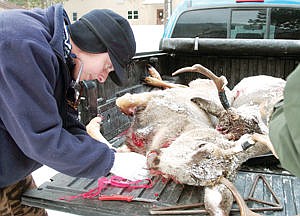 A total of 2,146 hunters passed through the Canoe Gulch check station along Highway 37 north of Libby this year, bringing with them 64 whitetails, 39 mule deer and 12 elk for a success rate of 5.4 percent. While those numbers are down markedly from the 2,900 hunters and nearly 7 percent success rate recorded in 2004, they are in line with a steady improvement seen over the past three years, according to Montana Fish, Wildlife & Parks wildlife biologist Tonya Chilton-Radandt. The number of elk brought into the station is twice the number recorded last year, she added.
