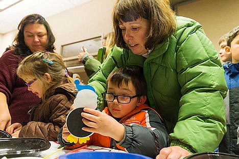 Joseph Williams was among the youths who enjoyed making holiday crafts in a packed conference room. He decorated a Christmas tree with just the right ornaments.