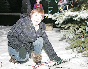 Hotel Libby's Gail Burger lights the Christmas tree at the end of Mineral Avenue Friday evening.