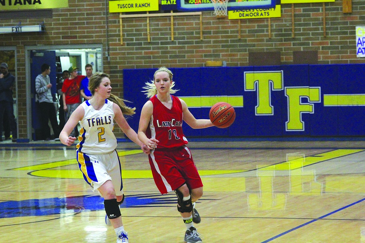 Superior Lady Bobcat Emma Duboise dribbles around an opponent during a game last week against Thompson Falls. Thompson Falls won a hard fought contest 60-56.