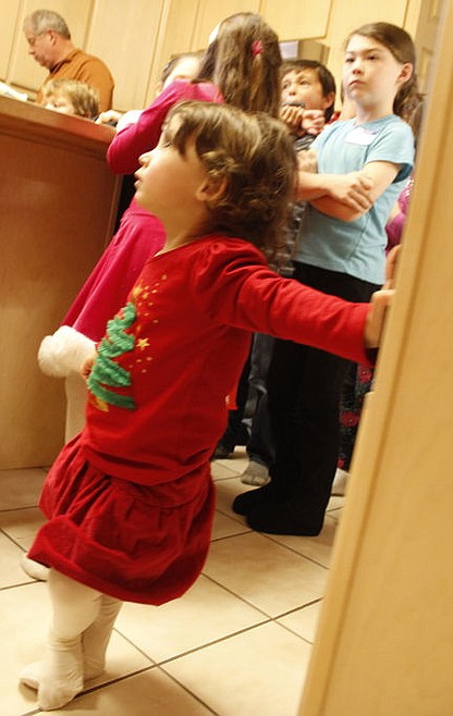 POLSON – Warm golden light cloaked everyone in attendance. Girls in fancy dresses and boys in button-up shirts sat in the laps of their cross-legged mothers while others sat on the knees of their parents, grandparents, great grandparents and family friends in chairs, stools and lining the rich fireplace hearth.