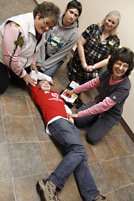 Chubby Chicks Basketball for Heart was on the scene to demonstrate how the AED (Automated External Defibrillator) works and Ethan McCaulley was the patient to be worked on.