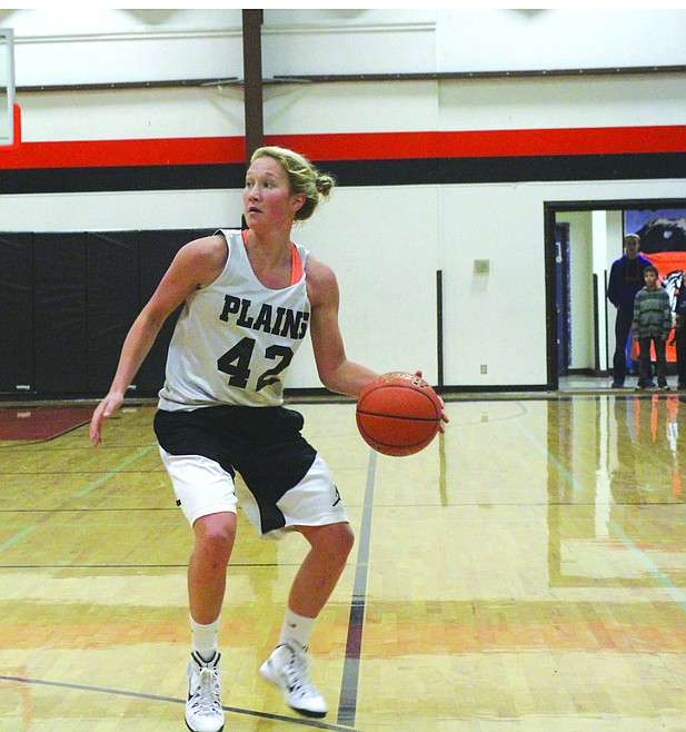 Hailey Phillips moves the basketball into the offensive zone during the Trotters scrimmage.