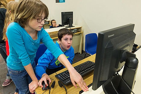 COEUR d'ALENE - Nico Willett, 10, raised his arms in the air, triumphant after completing another level during the "Hour of Code" event Wednesday afternoon.