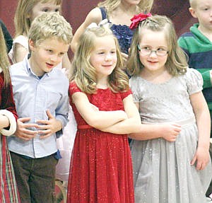 Mrs. Huntsberger's kindergarteners sang "Jingle Bells" and "Rudolph the Red Nosed Reindeer" during Morrison Elementary's Winter Concert Tuesday evening. With Jacob Garrison, left, Addyson Fisher and Kyleigh Osterberg.
