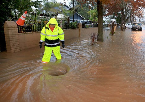 There were multiple accidents on flooded roads, and several trees crunched cars. Interstate 5, California's critical north-south thruway, was closed by flooding in the northern town of Weed. In Marin County, heavy rains washed out a portion of state Route 1, the San Francisco Chronicle reported.