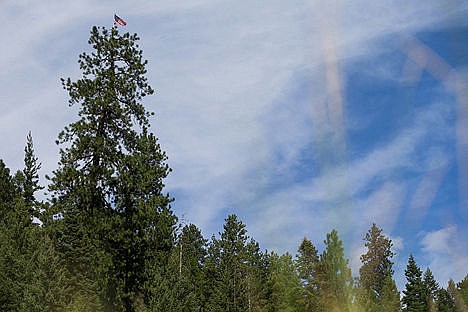The flag - which was high atop a Ponderosa pine on the north side of the highway around mile marker 27 - was illuminated by a solar lighting system at night that made it clearly visible from Interstate 90.