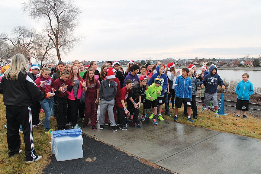 MOSES LAKE - About 70 Frontier Middle School students took to Neppel Trail Wednesday, some donning Santa hats, a few wearing reindeer antlers and other festive gear, to participate in the school's first-ever 'Jingle Bell Dash.'