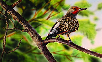 Ukrainetz of Great Falls captured first place this year with his engraving on white claybord, “Flicker’s View.” Born and raised in Great Falls, Ukrainetz is a life-long artist. During the past 30 years as a professional artist, he has garnered awards from numerous shows across the country. He has been featured in many magazines, including Western Art Collector, Wildlife Art Magazine, and The Artists Magazine. Ukrainetz is a living master in acrylics on engraved claybord.