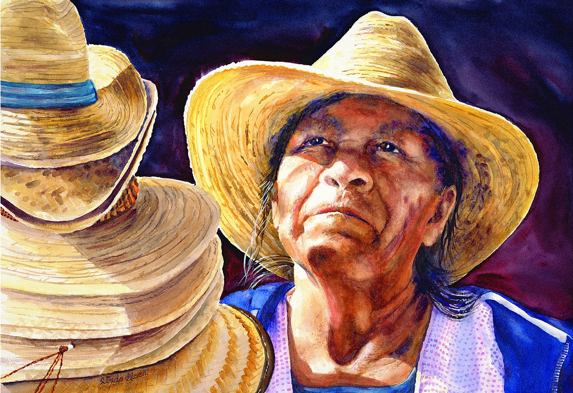 “Great Expectations,” a watercolor by Kalispell resident Olsen, took the second-place $100 prize. Olsen is a native Montanan born east of the mountains, who has lived in the Flathead for the last 45 years. Always interested in art, she majored in German and Art Education, teaching German at Columbia Falls High School for 10 years. During that time, she painted a little and mostly in acrylics, but was busy raising a family and working in family businesses. About four years ago, she took Karen Leigh's watercolor course at FVCC and fell in love with the medium. Since that time, multiple trips to Mexico have inspired her to paint the people and places she has seen. In “Great Expectations,” there were many layers or washes applied to achieve the sun's glow on her skin. Olsen’s other favorite subjects include local scenes, family and friends.
