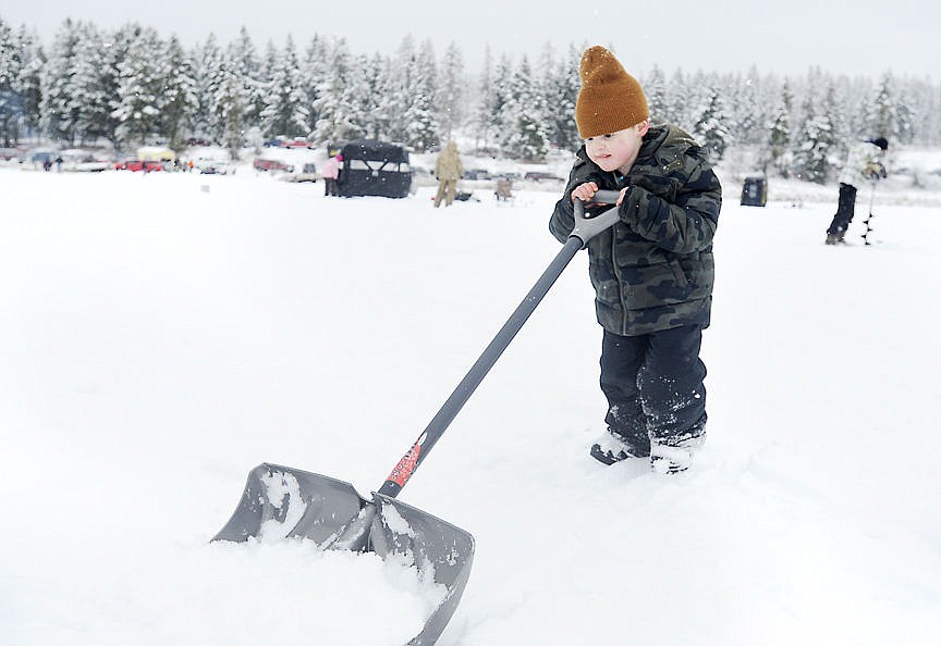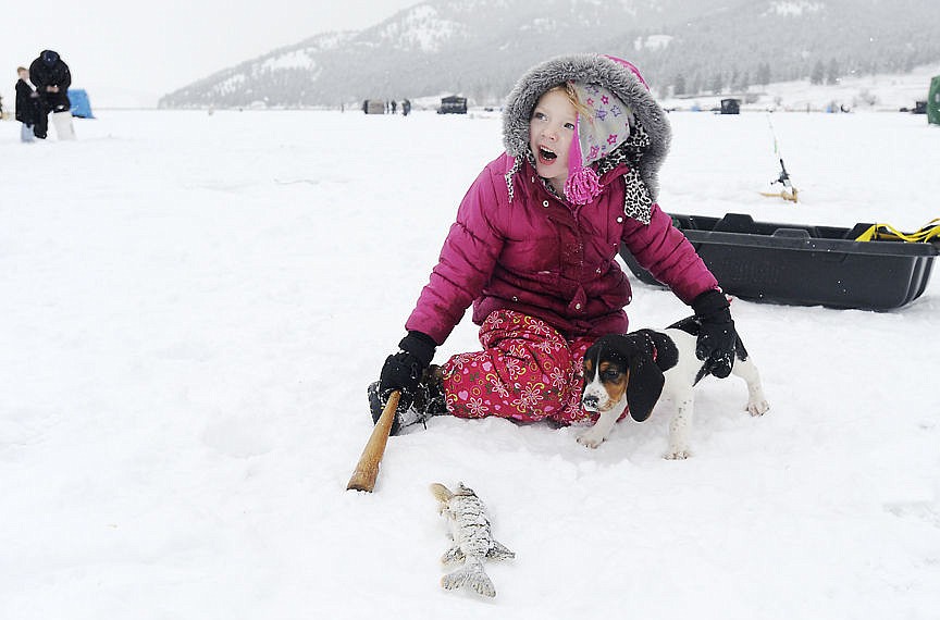 More than 400 anglers took to the ice Saturday on Smith Lake for the 44th annual Kalispell Sunriser Lions Family Ice Fishing Derby.