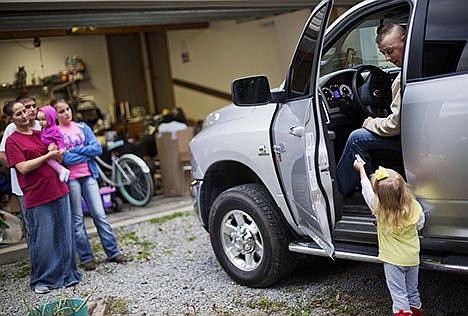 Madonna Sizemore balances the baby on her hip as daughter Bryannah walks by with an armful of freshly laundered coveralls, their reflective strips shining, and tosses them into the back seat of the idling pickup truck.