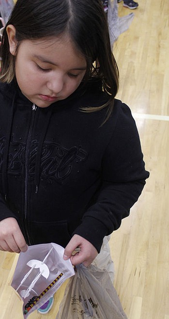 Third grader Alexa was touched by her purchase of a reindeer made of thin, white wood. She carried the fragile knick-knack in a decorative bag.
