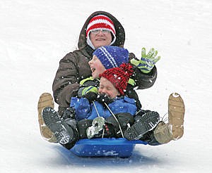 Wintertime fun at Ski-Dale hill with Cassidy, top, Alex and Nolan Barber Sunday afternoon.