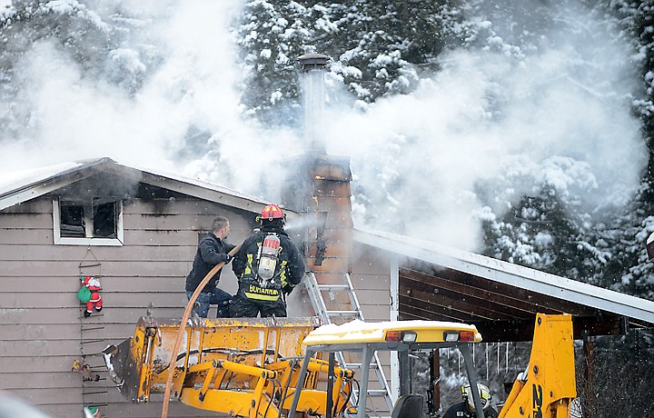 Firefighters from West Valley and Smith Valley Fire Departments respond to a structure fire at a home on McMannamy Drive west of Kalispell on Saturday, February 1. (Brenda Ahearn/Daily Inter Lake)