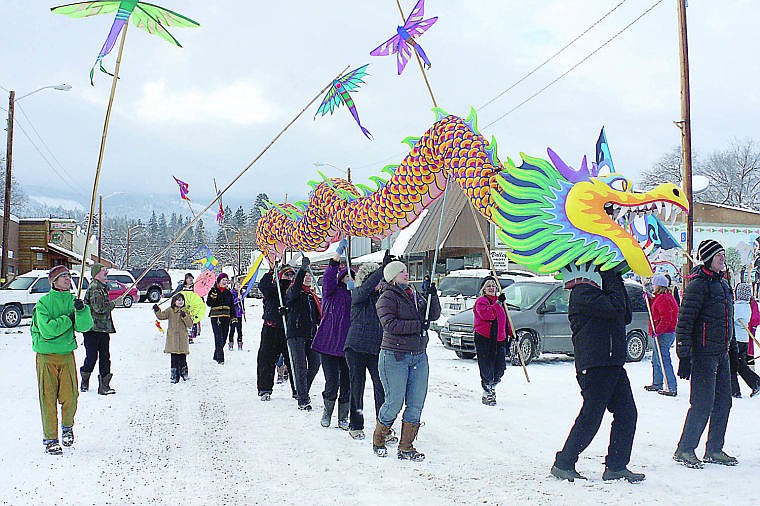 Numerous local volunteers take the dragon around downtown Hot Springs.