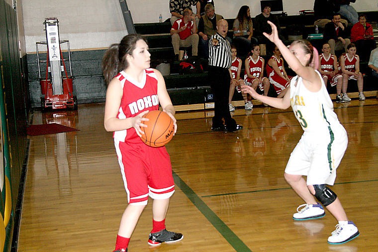 Lady Red Devil Kristin Webley prepares to put the ball back into play in the away game against St. Regis on Tuesday.