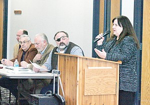 Commissioner Mike Cole of Eureka, left, Commissioner Ron Downey of Troy, L. Harold Blattie, Montana Association of Counties Executive Director, Commissioner Tony Berget of Libby and Lincoln County Clerk and Recorder Tammy Lauer.