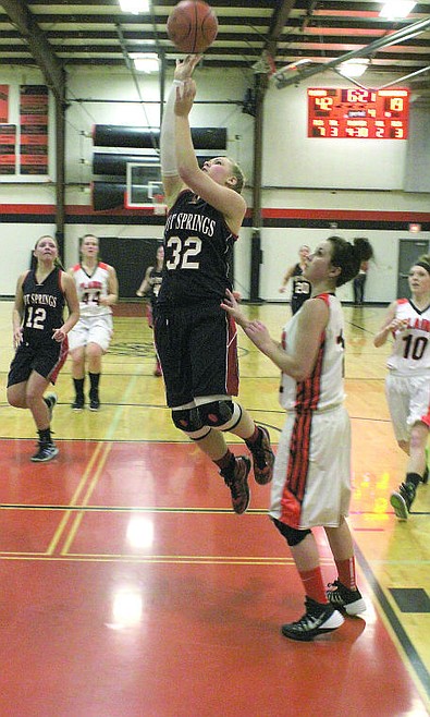 Lady Savage Heat player Alex Green takes it to the net in a game against Plains last week.