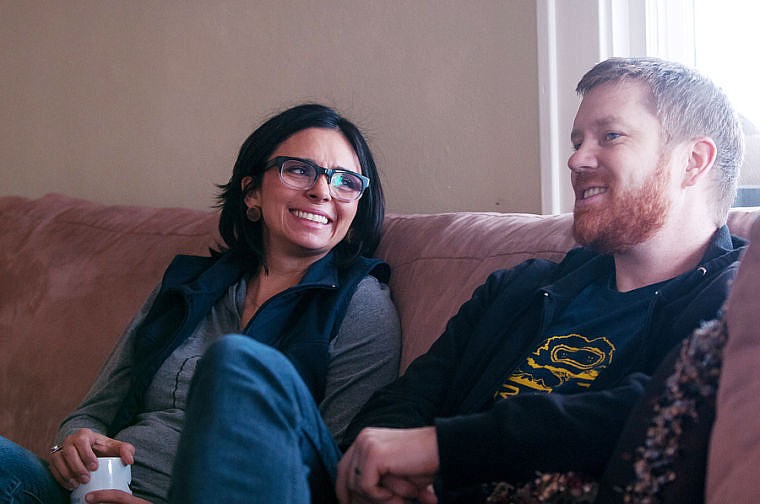 Devin and Lisa Kelly discuss Recycled Skateboards International Monday morning at their home in Whitefish.