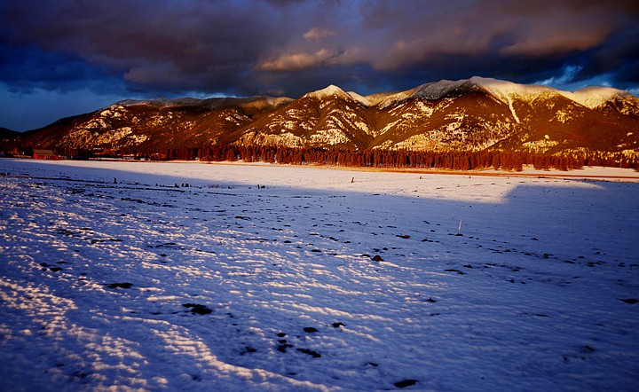 View of the Swan Mountains at sunset on Wednesday, January 12, east of Kalispell. (Brenda Ahearn/Daily Inter Lake)