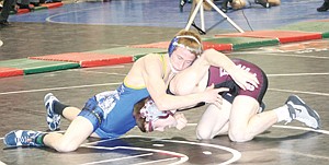Freshman Buddy Doolin at state wrestling tournament Feb. 13.