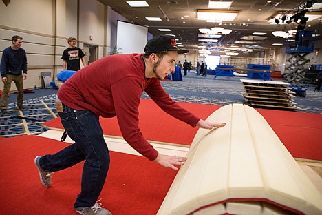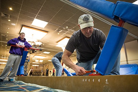 The gymnastics festival takes place at The Coeur d'Alene Resort, where ballroom floors are covered with mats and springboards, and uneven bars and balance beams rise up from the ground.