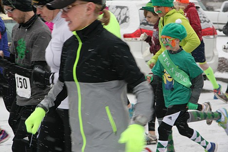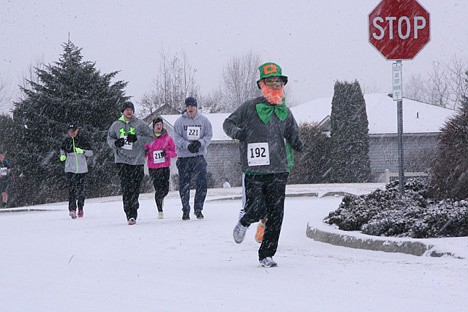 COEUR d'ALENE - Runners hurried through snow flurries during the 24th annual Leprechaun Scurry at Lake City High School on Sunday morning.