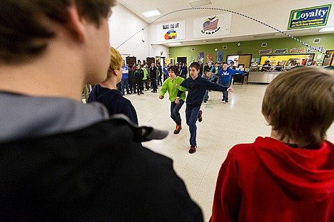 Among the boys' activities was learning to work together with a jumping rope exercise. If one participant didn't do his part, it had a ripple effect.