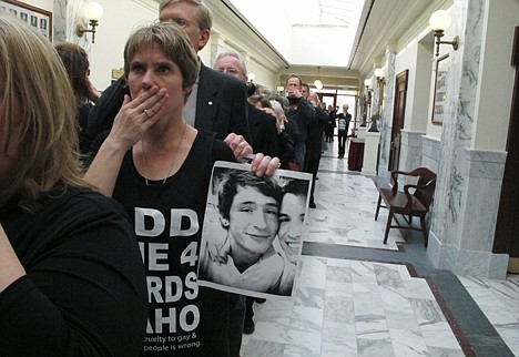 BOISE - At least 105 gay rights demonstrators filled the Capitol's basement corridor Tuesday seeking to convince Republican lawmakers to update the Idaho Human Rights Act with discrimination protections based on gender identity and sexual orientation.
