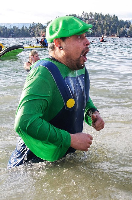 Several participants wore costumes Wednesday afternoon during the annual Polar Bear Plunge at The Raven in Woods Bay.. Jan. 1, 2014 in Woods Bay, Montana. (Patrick Cote/Daily Inter Lake)