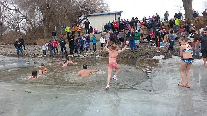 MOSES LAKE - Dozens of brave men, women and children took a leap into the freezing waters of Moses Lake on New Year's Day Wednesday.
