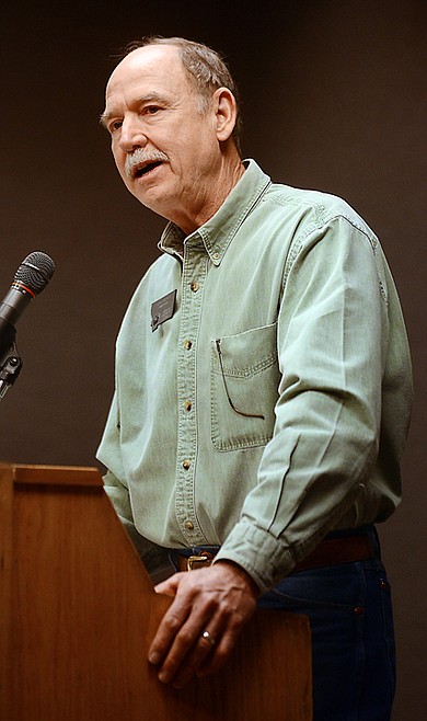 Montana Fish, Wildlife and Parks Commissioner Gary Wolfe, who represents western Montana, addresses those gathered for a meeting to address the 2014-2015 hunting regulation proposals on Saturday, January 4, in Kalispell. (Brenda Ahearn/Daily Inter Lake)