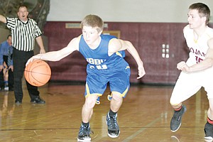 Sophomore guard Jonny Cielak drives past Troy's Ryan Huffman in second quarter 1-4-14
