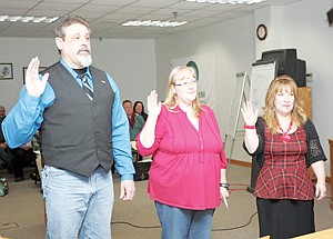Libby City Council members Brent Teske, left, Barbara Desch and Robin Benson take oath of office